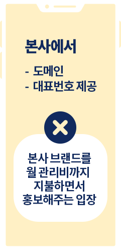창업주에게 본사 소유의 도메인과 대표번호를 제공해주어 본사의 콜 수를 늘리는